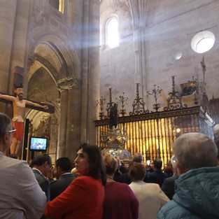 La notte è stata difficile dopo il massaggio fatto da Nello la sera precedente mi sono svegliata di colpo x quanto il ginocchio stava bruciando. 5.15 mi preparo, lascio lo zaino alla reception e 5.45 si parte. Vado pian pianino il ginocchio sembra non voglia proprio darmi una mano oggi. Lascio la città alle spalle, camminando in mezzo a pinete e vigneti. Sosta ad Azofra x colazione al bar El Descanso del Peregrino: tortilla, succo d'arancia, cappuccino ed anti infiammatorio x bocca. Poco x volta mi fa effetto e mi sento meglio. X tutta la giornata cammino con il sole alle spalle. Immersa nei campi di grano prima di Ciruena prendo un succo in bricco a donazione e stupita il ragazzo si lamenta che non è abbastanza. 😱 Un boccone a Santo Domingo de la Calzada dove a fatica si riesce ad entrare nella cattedrale causa una processione. Gli ultimi km. sono colpita da un intossicazione ed il ginocchio che si è ricordato di essere infiammato. Sosta x la notte all'Albergue La Casa de las Sonrisas. Lo zaino arriva dopo di me. In certi momenti della giornata ho avuto momenti di malinconia di David, i bambini, mia mamma, i miei pensieri viaggiano su e giù nel tempo alla velocità della luce. Cercare di parlare con me stessa, fare chiarezza, riuscire a lasciar andare papà, è tanto difficile. 😢❤️