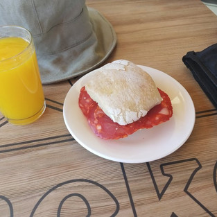 Ho dormito poco ma bene avrei ancora voluto stare nel letto ma mi preparo poco x volta, la mia intenzione è di usare sempre in questi ultimi giorni i sandali, tempo permettendo. Si va al bar A Pedra x un buon succo d'arancia fresca e caffè con latte, foto ricordo coi proprietari che sono stati gentilissimi con noi, sempre disponibili, mi sono trovata davvero bene qui, posto da segnare sulle note x i prossimi pellegrini, ma è giunto il momento di partire. Direzione Bardabelo, Rente, un attimo di strada normale forse x uno sbaglio causato da una distrazione, oggi la spalla mi fa impazzire ho troppo cibo e cose da bere, mi fermo e cerco di consumare il più possibile x diminuire il peso. Incontriamo molti pellegrini in alcuni punti come un mare, tutti questi zaini colorati mischiati con il verde della campagna. A Peruscallo una sosta x bere e si prenotato i prossimi ostelli fino a lunedì sera. Entriamo a Morgate e siamo al 101.996 km. da Santiago e sosta alla fontana, oggi tutte le fontane sono nostre. A Mirallos ammiriamo la Iglesia di Santa Maria da fuori. Eccolo è lui il paletto dei 100 km. finalmente, che conquista. A Mercadoiro sosta x pranzo, questo albergue e bar in mezzo al nulla è favoloso, si mangia benissimo, un bel giardino x gli ospiti lo consiglio a chi ha intenzione di fare il cammino. Niente scherzi, bisogna arrivare a Portomarin, fa caldo tanto, ma in lontananza si inizia a vedere la cittadina la pensavo più grande ed invece ha solo circa 1500 abitanti. Appena si esce dal sentiero si vede il ponte ed il bellissimo fiume Mirio. Alloggiamo a casa Cruz una grande camerata in comune pulita ma con un unico bagno. Cena da Perez ho mangiato il mio primo 🐙 della Galizia, prezzi giusti e cibo buono, molto consigliato. Questa è una piccola realtà con una grande vita notturna. Conclusioni della giornata: dolore passeggero alla spalla sinistra, le bolle ai piedi stanno guarendo, altri dolori non ne ho avuti, stanchezza parecchio inizia a farsi sentire anche colpa del caldo, la famiglia sempre nel mio 💓, felice di essere quasi al traguardo della mia avventura.